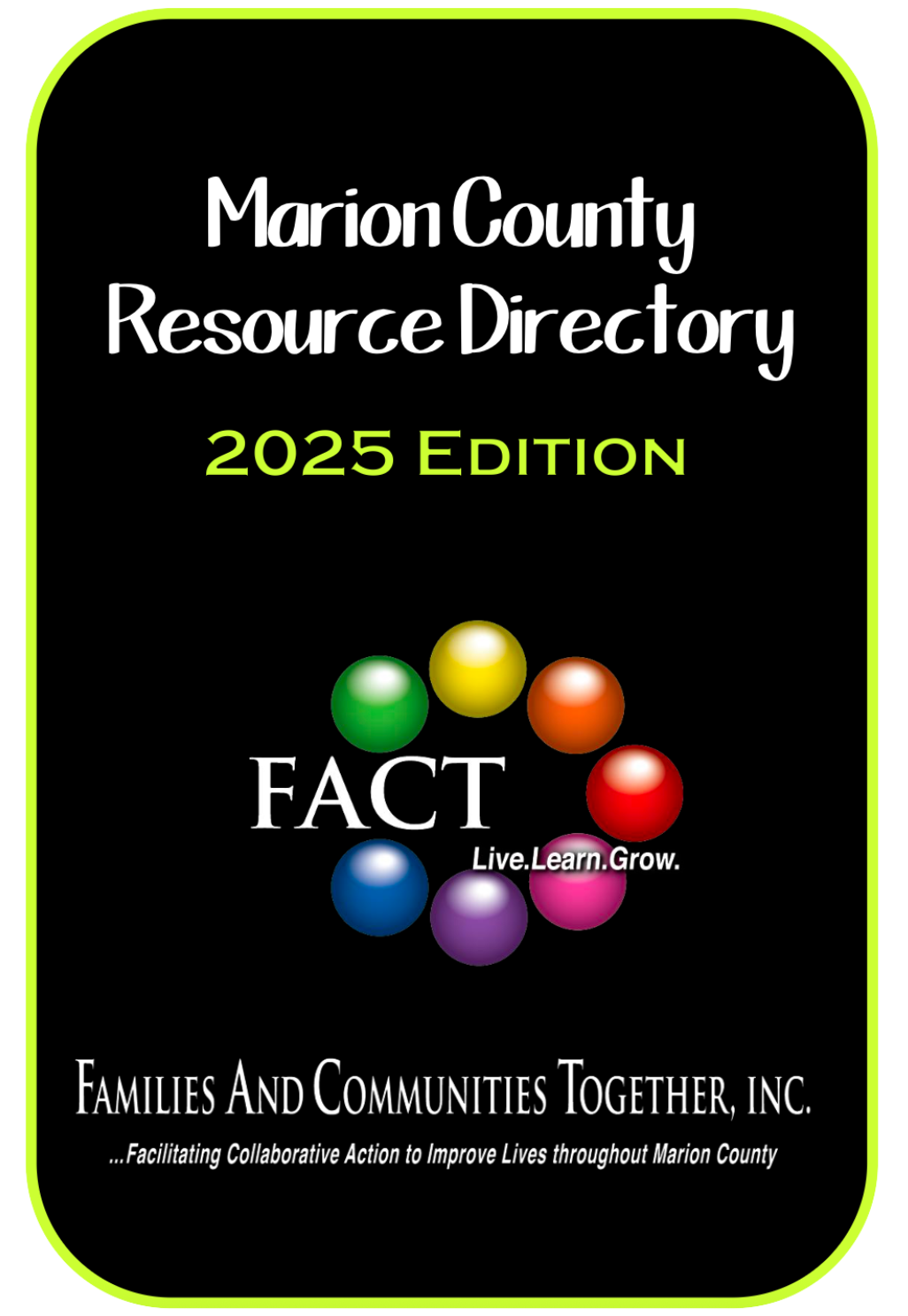 FACT is also responsible for organizing and printing the Marion County Family Resource Directory and distributing them throughout the county in schools, city buildings, health department, hospitals, clinics, doctor’s offices, etc. If a family has a need of any kind, please refer them to us.